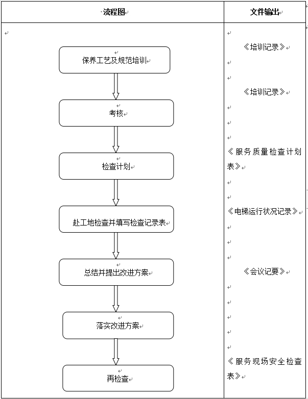 保養(yǎng)工藝及規(guī)范培訓(xùn),考核,檢查計(jì)劃,赴工地檢查并填寫檢查記錄表,總結(jié)并提出改進(jìn)方案